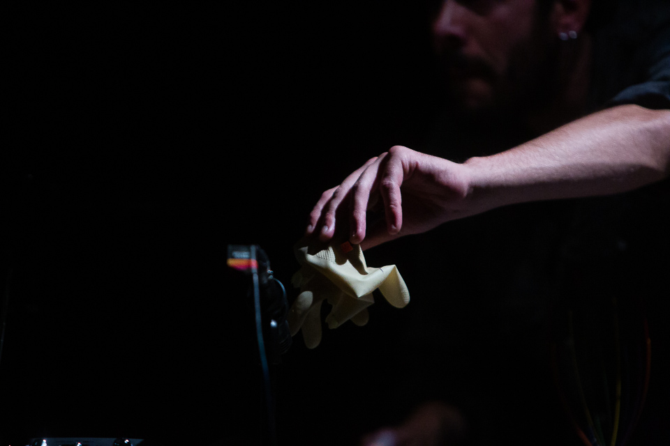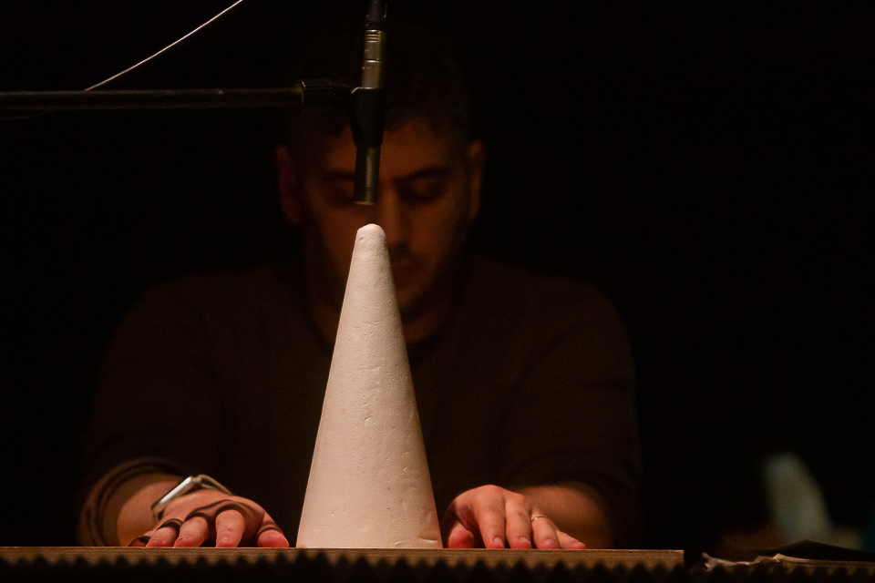 Jonathan Saldanha is a sound and scenic constructor who approaches pre-linguistic elements, crystallization, animism and eco in his work. He is the co-creator of the stage pieces NYARLATHOTEP, MÁQUINA DA SELVA, REI TRIOLOGY and DEL, shown at spaces such as the Rivoli Municipal Theatre of Porto, Accès(s) Festival and the Serralves Museum of Contemporary Art. Since 2010, he has composed a series of pieces for voice, electronics and resonant space such as: TEUFEL RADAR for chorus and antenna; KHŌROS ANIMA for chorus, sub-bass and factory space; SANCTA VISCERA TUA for gesture, percussion, termites and chorus, based on the archetypes of a Via Sacra, and SILVO UMBRA for chorus, scintillating sheen and spherical space. He belongs to the production duo FUJAKO, directs the project HHY & The Macumbas, and was the founder of the collective SOOPA, an arts platform that releases music and schedules concerts and performances, which he started in 1999, in Porto. He has performed concerts at festivals such as Sónar, Primavera Sound, Amplifest, Out.Fest, Milhões de Festa, Neopop and Elevate, and in spaces such as Ancienne Belgique in Bruxelas, Berghain Kantine in Berlin, Stubnitz in Hamburg, Filmerla Musique in Paris and Issue Project Room in New York. His music has been released by Ångström, Tzadik, Rotorelief, SiloRumor and Wordsound. His film/essay MÁQUINA DA SELVA / MUNDO DE CRISTAL was released by the Serralves Museum of Contemporary Art.