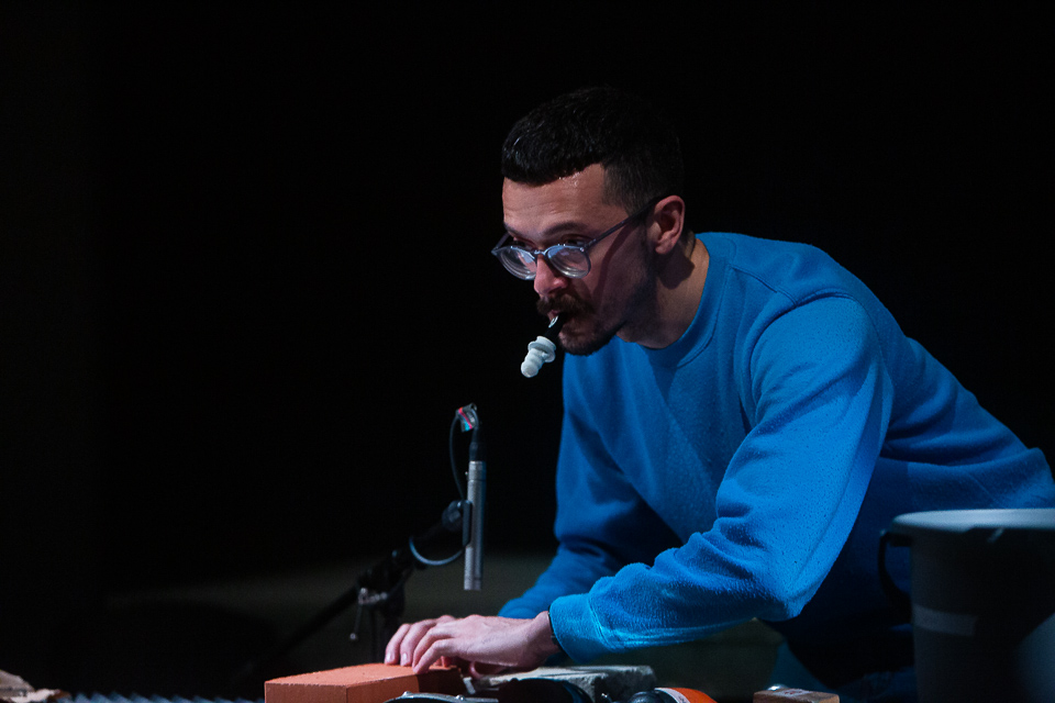 The amateur film-maker and three Foley artists make a score out of the film. While the performers are obsessively seeking to literally reproduce the noises produced by objects and beings in the film, instead they are unmaking the illusion, uncovering the mechanisms used to create a lie. The director uses the opportunity to play with possibilities, experimenting with narratives that range from the visual world of small and playful stories to the narrative world created through comments of a restless producer.