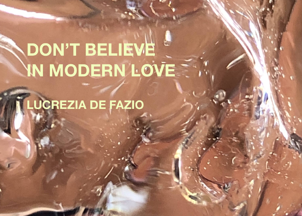 O trabalho de Lucrezia é sobre encontros com ela própria: com o seu corpo e com a textura deste, com a sua forma; ou com outra pessoa, ao relembrar o momento em que esse encontro aconteceu e revelando-o. É sobre a intimidade e a intimidade partilhada. É sobre o amor. Uma história de amor. Onde o encontro, o sexo, a obsessão, o abandono, a dor e o prazer são os seus elementos principais. Como o título sugere, a exposição Don’t Believe in Modern Love (Não Acredites no Amor Moderno) é uma reflexão sobre os relacionamentos na nossa sociedade contemporânea e Ocidental. No começo do novo milénio, o filósofo e sociólogo polaco Z. Bauman cunhou a metáfora da solidez e da liquidez para caracterizar o que significa ser moderno na nossa condição atual. De acordo com Bauman, nós vivemos num tempo de interregno, no qual as velhas certezas como o emprego, o casamento, a religião, a família, estão a ser veementemente postas em causa. Num presente caracterizado pela mudança constante, elas parecem ser inapropriadas e castradoras; enquanto as novas maneiras de lidar com os desafios da vida moderna aparentam ser demasiado efémeras, esperanças trêmulas com as quais não podemos contar. A ideia da exposição e dos seus trabalhos gira em torno da tentativa de mediar a possibilidade de encontrar um equilíbrio entre os nossos desejos de liberdade e de estabilidade, de liquidez e de solidez, em relação a uma “cara-metade”.