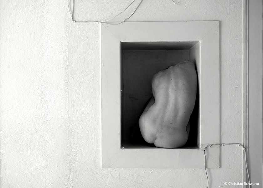 Um corpo respira com o espaço, num fluxo de movimento que deixa aparecer imagens evocativas. Adere aos seus limites e deixa-se moldar no encontro. Aceita a deformação como caminho. A respiração lenta constitui-se como ritmo de base, abrindo a atenção do público para outros elementos: a luz, o som, a pele, as texturas, a atmosfera.